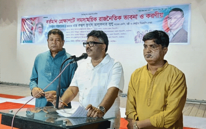 প্রান্তজন রিপোর্ট: বিএনপির কেন্দ্রীয় নেতা ও সাবেক মন্ত্রী অ্যাডভোকেট রুহুল কুদ্দুস তালুকদার দুলু বলেছেন, আগামী জাতীয় সংসদ নির্বাচনে কোন ষড়যন্ত্রই বিএনপির বিজয়কে ঠেকাতে পারবে না। বিএনপি নেতাকর্মীরা ঐক্যবদ্ধ থাকুন। দুলু বলেন, আমি বিশ্বাস করি, আপনারা ঐক্যবদ্ধ হলে বিএনপি গতিশীল হবে এবং বিএনপির ভারপ্রাপ্ত চেয়ারম্যান তারেক রহমান ও তিনবারের সফল সাবেক প্রধানমন্ত্রী বিএনপি চেয়ারপার্সন বেগম খালেদা জিয়ার নেতৃত্বে পরিচালিত বিএনপিই আগামী দিনে রাষ্ট্রীয় ক্ষমতায় যাবে। কোন ষড়যন্ত্র চক্রান্ত বেগম খালেদা জিয়া ও তারেক রহমানের এই বিজয়কে কেউ ঠেকাতে পারবে না।