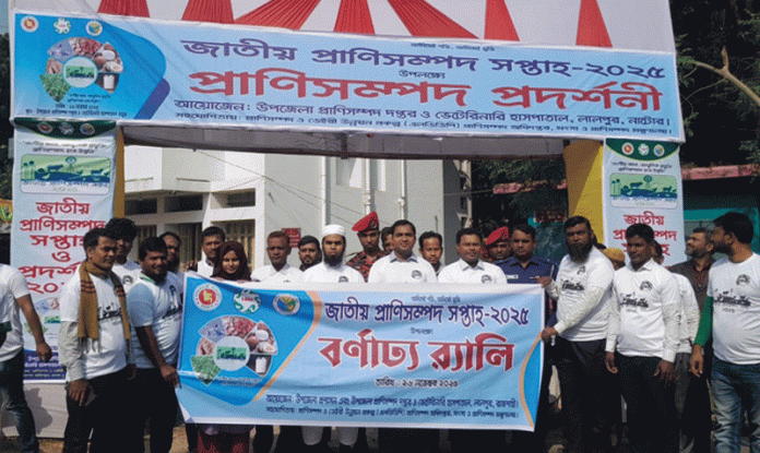 লালপুর প্রতিনিধি: ”দেশীয় জাত, আধুনিক প্রযুক্তি, প্রাণিসম্পদে হবে উন্নতি”এই প্রতিপাদ্যকে সামনে রেখে নাটোরের লালপুর উপজেলা প্রশাসন ও প্রাণিসম্পদ দপ্তরের আয়োজনে বর্ণাঢ্য র্যালী ও আলোচনা সভা সহ ৭দিন ব্যাপী মেলার উদ্বোধনের মধ্য দিয়ে প্রাণিসস্পদ সপ্তাহ শুরু হয়েছে। বুধবার সকালে উপজেলা প্রাণিসম্পদ দপ্তর চত্বরে প্রধান অতিথি হিসেবে উপস্থিত থেকে উপজেলা নির্বাহী অফিসার মো: জুলহাস হোসেন সৌরভ বেলুন উড়িয়ে এর উদ্বোধন করেন। এসময় উপজেলা প্রাণিসম্পদ অফিসার ডা.মো: আব্দুল্লাহ এর সভাপতিত্বে অ্ন্যান্যের মধ্যে উপস্থিত ছিলেন উপজেলা সহকারী কমিশনার ভূমি মো: আবীর হোসেন,লালপুর থানার ওসি (তদন্ত) এস,এম রিয়াজুল হাসান,প্রাণিসম্পদ কর্মকর্তা ডা.তানবীন রুবাইয়া সিদ্দিকী,মডেল প্রেসক্লাবের সভাপতি মো: শাহ্ আলম সেলিম , উপজেলা প্রেসক্লাবের সিনিয়র সহ-সভাপতি সাহীন ইসলাম,উপজেলা কৃষি সম্প্রসারণ কর্মকর্তা সুব্রত সরকার প্রমুখ। প্রাণিসম্পদ অধিদপ্তর চত্বরে বিভিন্ন প্রজাতির পশু ও পাখির ২৬ টি ষ্টল অংশ গ্রহণে ৭ দিন ব্যাপী মেলা অনুষ্ঠিত হয়েছে।