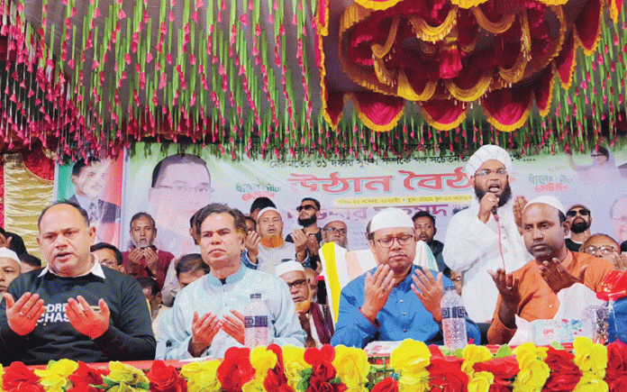 মঙ্গলবার (২৫ নভেম্বর) সন্ধ্যা ৭টায় উপজেলার চৌগ্রাম স্কুল মাঠে ইউনিয়ন বিএনপি আয়োজিত এ দোয়া মাহফিলে প্রধান অতিথি হিসেবে উপস্থিত ছিলেন জেলা বিএনপির যুগ্ম আহ্বায়ক, সিংড়া উপজেলা বিএনপির সাবেক সাধারণ সম্পাদক ও নাটোর-৩ (সিংড়া) আসনে বিএনপির মনোনয়ন প্রত্যাশী দাউদার মাহমুদ।
