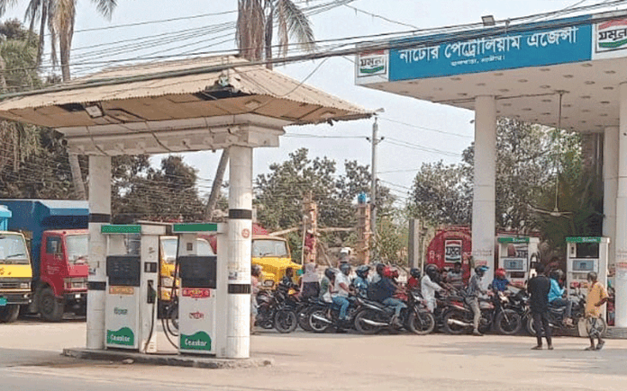 প্রান্তজন রিপোর্ট: ইরান ও ইসরায়েল যুদ্ধ পরিস্থিতিতে নাটোরসহ সারাদেশে জ্বালানি তেল সংকট দেখা দিয়েছে। মোটরসাইকেলসহ ছোট-বড় যানবাহনগুলোকে সীমিত পরিসরে তেল নিতে হচ্ছে। শনিবার (৭ মার্চ) দুপুরে নাটোর শহরের কয়েকটি জ্বালানি তেলের পাম্পে ঘুরে দেখা গেছে তেল সংকটের চিত্র। রাজশাহী-ঢাকা মহাসড়ক সংলগ্ন পাম্প ছাড়াও অন্যান্য জ্বালানি তেলের পাম্পে জ্বালানি পাওয়া গেলেও, সেখানে সিরিয়াল অনুযায়ী নিতে হচ্ছে সীমিত পরিমাণে তেল।