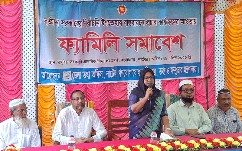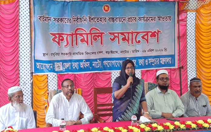 আশরাফুল ইসলাম, বড়াইগ্রাম: নাটোরের বড়াইগ্রামে বর্তমান সরকারের নির্বাচনী ইশতেহার বাস্তবায়নে প্রচার কার্যক্রমের আওতায় ফ্যামিলি সমাবেশ অনুষ্ঠিত হয়েছে। উপজেলার মাঝগাঁও ইউনিয়নের লাথুরিয়া সরকারি প্রাথমকি বিদ্যালয় মাঠে জেলা তথ্য অফিস এর আয়োজন করেন।
